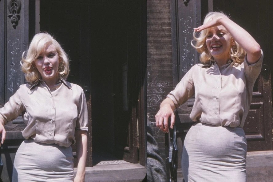 Автор фотографий – близкая подруга актрисы Фрида Халл – подтвердила: во время этой съемки Мэрилин действительно была беременна. Импровизированную фотосессию подруги устроили 8 июля 1960 года, возле павильона киностудии Fox Studios в Нью-Йорке.