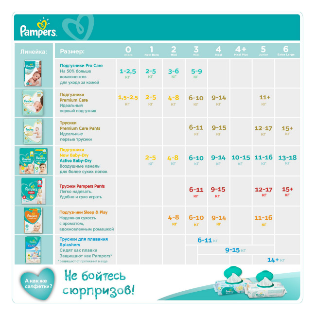 Вот краткое руководство о том, какой размер подгузника должен носить ваш ребенок, исходя из диапазона его веса и размеров подгузников самых популярных марок.
